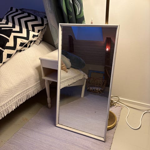 Vanhasta ikkunasta tehty peili. Puun värinen.