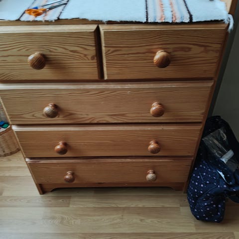 Mäntylipasto vailla uutta kotia. Ostin eilen kirppikseltä ja lipasto olikin väärän kokoinen haluamaani paikkaan. Tarjoa ja hae pian edestä pois.