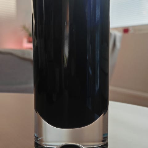Vaaleansininen/kirkas vaasi koko 18 x 5,5 cm.