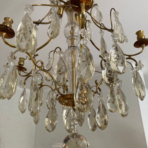 Hyväkuntoinen 1970-luvun vintage kristallikruunu.