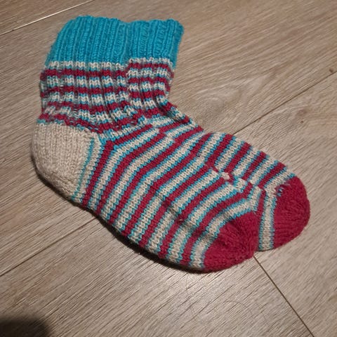 Myydään uudet villasukat, joiden pohjan mitta on 21 cm, joka vastaa noin kokoa 34.