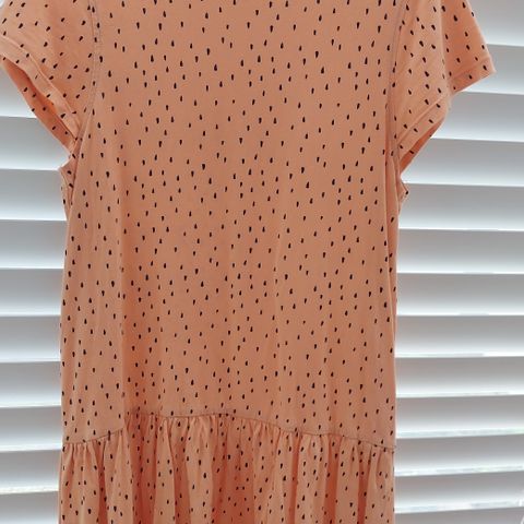 Name it mekko tytöille, koko 152. Pitkähihainen malli, jossa on huppu ja useampi poikkisauma helmassa, mikä luo kerrostetun ilmeen. Väri beige. Materiaali puuvillaa. Soveltuu arkeen ja vapaa-aikaan. Hihan resorissa pari pientä tahraa ja helmassa hento vihreä jälki.
