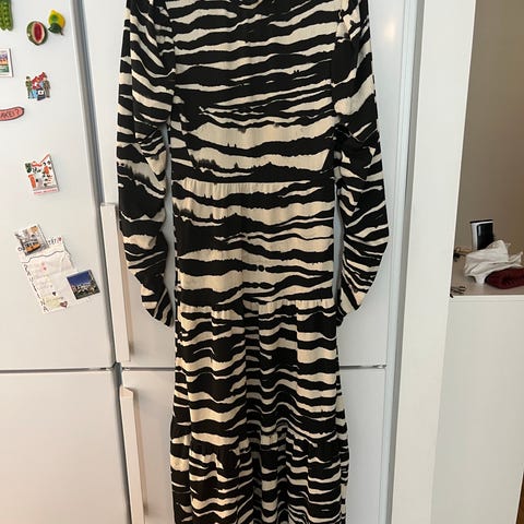 Pitkähihainen malli, jossa on edessä halkio ja nappikiinnitys pääntiellä. Materiaali on kevyttä ja laskeutuvaa.