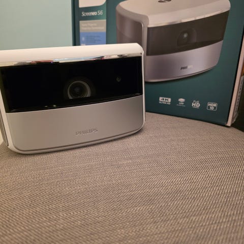 Philips Neo Prime One NPX535/INT kotiprojektori. Mukana kaukosäädin, virtajohto ja liitäntäkaapelit. Soveltuu kotiteatterikäyttöön ja multimediaesityksiin.