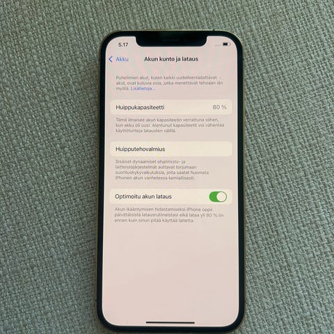 Hyväkuntoinen ja ehjä iPhone 12 Pro Max isommalla tallennustilalla. Puhelimessa ollut uudesta asti suojalasi sekä kuori. Kirkkaassa rungossa muutamia hentoja hiusnaarmuja (näkyy kuvissa). Akun kunto 96%. Alkuperäinen paketti ja latauspiuha kuuluu kauppaan.