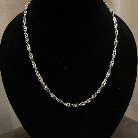 Mitat: kaulaketju 51cm pitkä, 4mm leveä. Ranneketju 19.5cm pitkä, 4mm leveä.