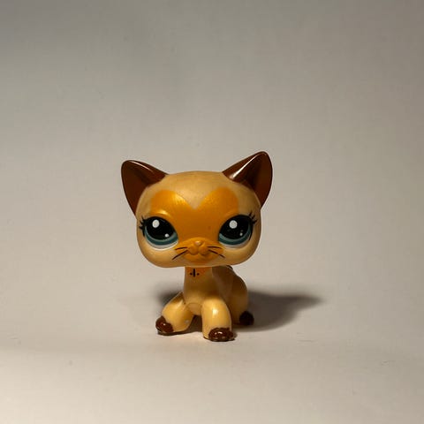 Harmaa LPS seisova kissa turkoosilla kukalla. Kunto leikitty, nenä hieman kulunut, mutta muuten siistin näköinen. Hinnassa on joustoa.