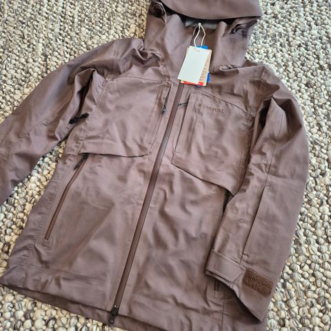 Tuulenpitävä ja yhä ainakin pientä sadetta pitävä takki. Takissa on merkintä TCS Water 3000. Sisäpuolella osittainen verkkovuori / verkkokangas, takana pieni tuuletusaukko. Useampi tasku. Kiristysnyörit.