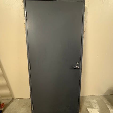 Myydään ovi vaikka työmaa käyttöön. Painike ja lukko johon usiampi avain.
