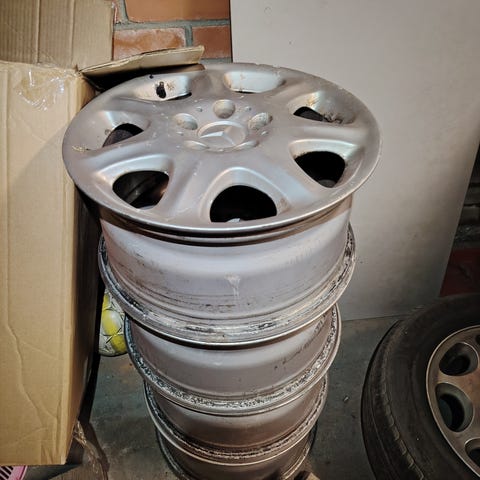 Mondeo MK4 alla olleet alumiinivanteet. Vanhat nastarenkaat Hakkapeliitta 8. Yksi kulunut, mutta kolmessa nastoja. Kumit vanhat, mutta vanteita tässä lähtökohtaisesti kauppaan.