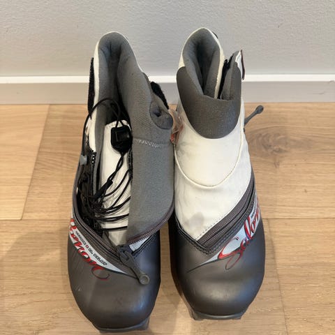 Salomon Prolink -hiihtomonot. Koko 37 ja 1/3. Sopii NNN-siteisiin. Harmaat punaisin yksityiskohdin. Monossa nauhakiinnitys, jonka päällä vetoketjullinen suojaläppä. Sisäpuolella pehmeä, lämmin vuori. Vähän käytetty. Soveltuu maastohiihtoon.