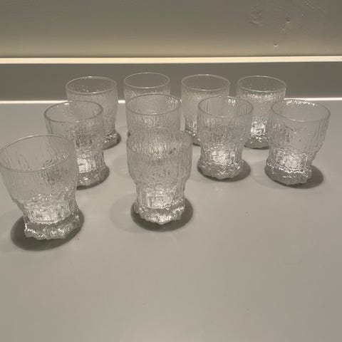 Iittala. Aslak lasi 11 kpl 13 euroa kpl. Korkeus 7 cm suu aukko 6 cm