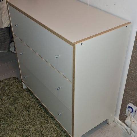 Siistikuntoinen lipasto/senkki, ostettu Vekestä. Kaksi vetolaatikkoa. L90cm, K83cm ja S30cm.