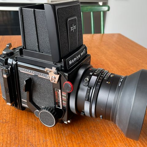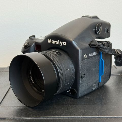 Mamiya 645AFD II kamera, filmiperä ja 80mm 2.8 objektiivi