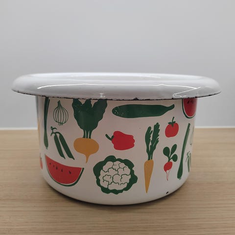 Hyvä kuntoinen Heikki Orvolan Arabialle suunnittelema emaloitu retro kattila