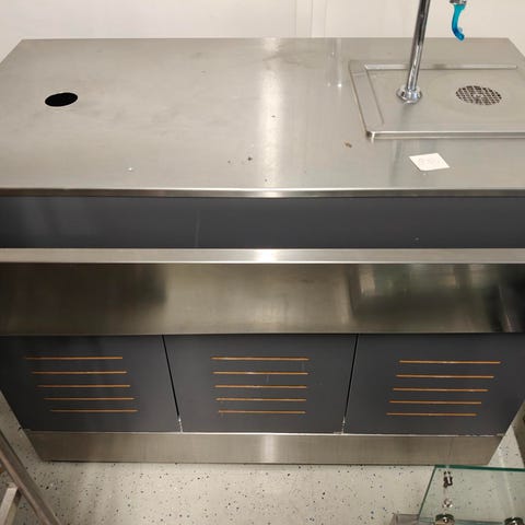 RST-pöytä, RST-kaluste, pöytä, taso, laatikosto, uuni, kiertoilmauuni, lämpöhaude, vihannesleikkuri, rasvakeitin, RST, ruostumaton teräs, teräs, rosteri