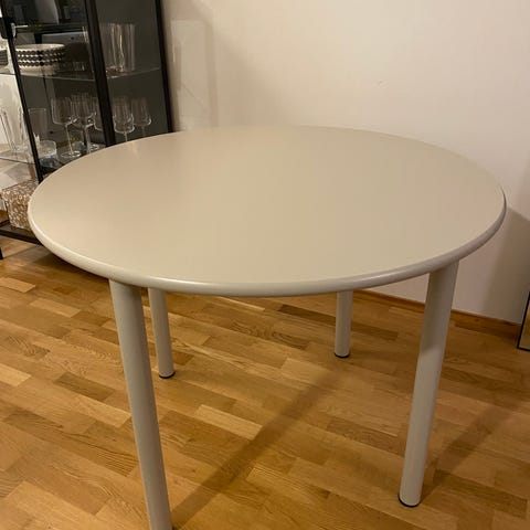 Myydään 160cm x 90cm ruokapöytä. Yleisilmeiltään siisti. Muuten ei näkyviä jälkiä paitsi kuumasta kattilasta tms tullut jälki pöydän levyyn. Ei näy kun tietyssä kulmassa/valossa. Sekä kulmasuojista pöydän pohjapuolelle tulleet ruuvin jäljet, jotka ei tietty näy käytössä.