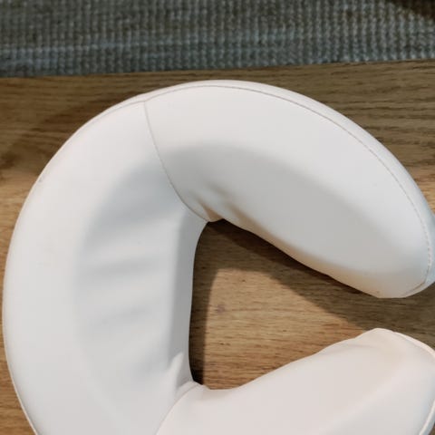 Puolipyöreä tyyny polvien alle hoitopöydälle. Väri lime, teetetty, leveys 50cm