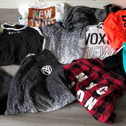 ISO vaatepaketti koossa 158-164. Paitoja, t-paitoja, shortseja, yhdet housut, sukkia, yhdet uimashortsit. Vans, Adidas, Me&I, TH, Calvin Klein, Levi's ym. Hyvässä käytetyssä kunnossa.