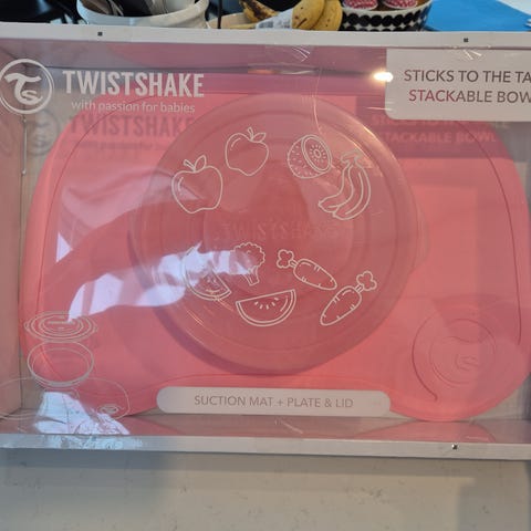 Tämä setti sisältää silikonimaton, lautasen ja kannen. Matto on suunniteltu auttamaan ruoan pysymisessä paikallaan ja lautanen on täydellinen aterioiden tarjoiluun. Kantta voidaan käyttää jäännösten säilyttämiseen tai lautasen peittämiseen, kun sitä ei käytetä.