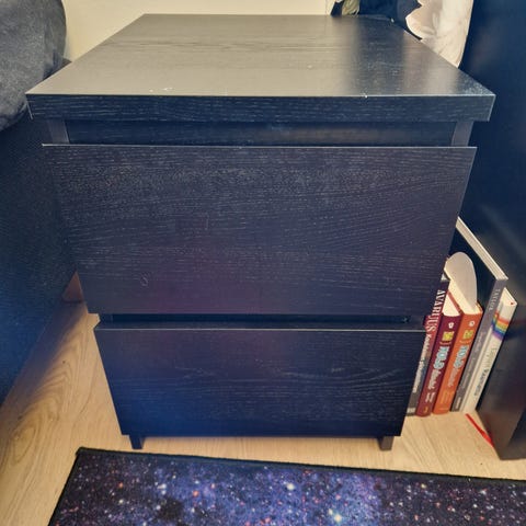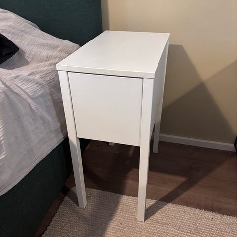 Myydään ikean yöpöytä. Muutamia kolhuja löytyy, jotka kuvissa näkyy. Vain haku.