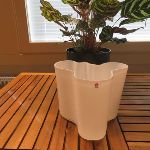 Saatu lahjaksi ja ollut muutaman kerran esillä/ käytössä, mutta ei sovi omaan sisustusmakuun värinsä vuoksi.