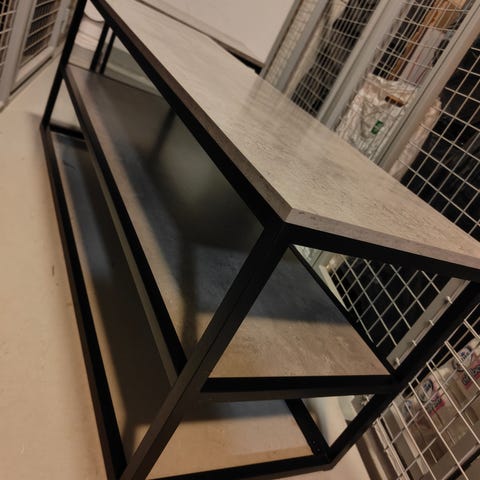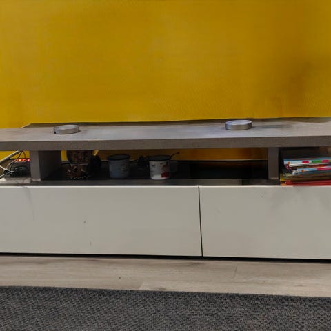 Jysk tv taso. Leveys 120cm, korkeus 37.5cm ja syvyys 45cm.
