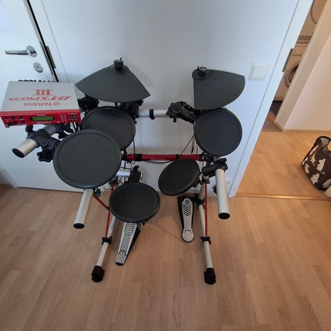 Rummut ovat paljon soitetut, mutta edelleen täysin ehjät ja toimivat. Näillä pääsee hyvin harrastuksen pariin tai uudestaan soittelun makuun. Kaikki padit ovat mesh-kalvolla ja ehjiä.