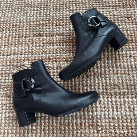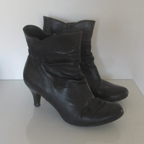 Mustat Gabor nilkkurit, koko 4. Nilkan sisäpuolella vetoketju. Korko noin 5 cm. Erinomaisessa kunnossa, olleet kerran käytössä. Myös nouto käy.