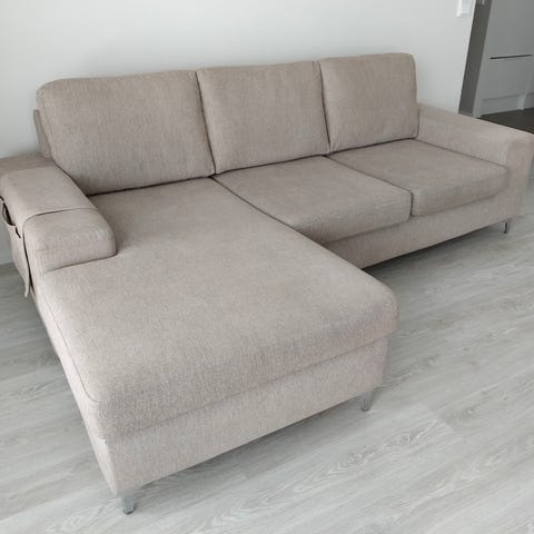 Divaanin istuinosan pituus on 150cm, leveys 68cm, selkänojasta lattiaan 83cm ja istuinpehmusteesta lattiaan 42cm.