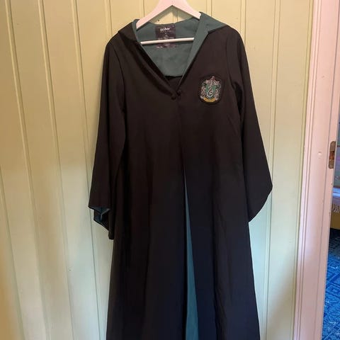 Harry Potter Slytherin (Luihuinen) musta hupullinen viitta, jossa vihreä vuorikangas. Sisällä sauvatasku, edessä logo ja nappikiinnitys. Koko vastaa L/XL. Käytetty kerran, joten kunto kuin uusi. Nouto tai postitus.
