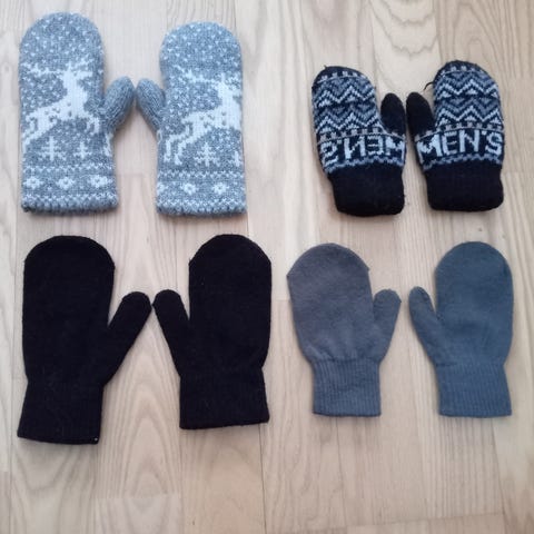 Myydään kahdet kudotut villalapaset. Kettu lapaset 4€, raidalliset 3€ tai yhdessä 6€. Tuoksuton ja eläimetön talous.