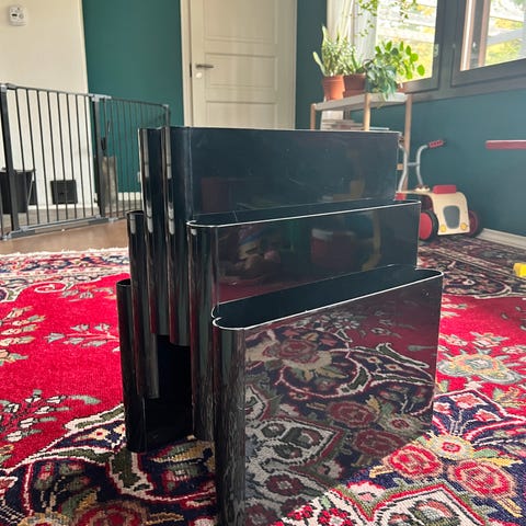 Sisäpuoli kullattu, alkuperäinen nahkavuoraus ehjä ja hyväkuntoinen.