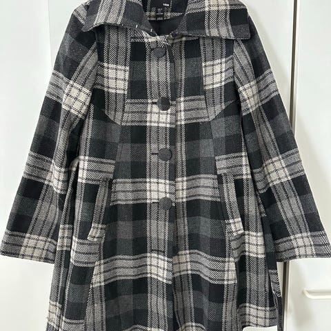 H&M vaalea villakangastakki koko 36, vähäisellä käytöllä ollut siisti puhdas ehjä takki, kultainen vetoketju edessä sekä taskuissa.
