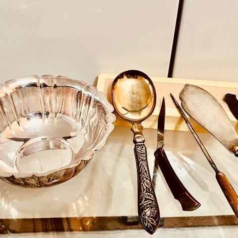 Vanhat aterimet, uushopeaa eli alpakkaa.