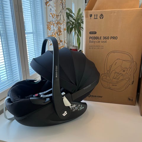 Myydään vuonna 2021 ostettu maxi cosin pebble 360 tummanharmaa turvakaukalo.