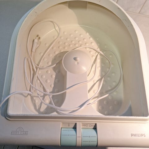 Vähän käytetty jalkakylpy lämpö- ja hierontatoiminnoilla.