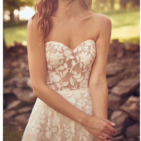 Aivan ihana vintage-henkinen Lillian West häämekko lyhyelle ihmiselle. Koko 8, mutta sivuista otettu hieman sisään ja itse olen käyttänyt tätä koossa 34. Kavennukset pystyy purkamaan. Pukua lyhennetty itselleni sopivaksi, 155cm + n. 5cm korot. Puku on olkaimeton, mutta itse teetin ompelijalla neppareilla kiinnitettävän yläosan.