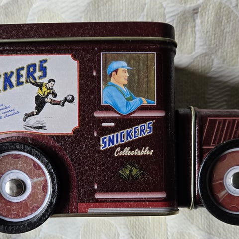 M&M’s ja Mars metalliset kuorma-autopurkit keltainen ja punainen