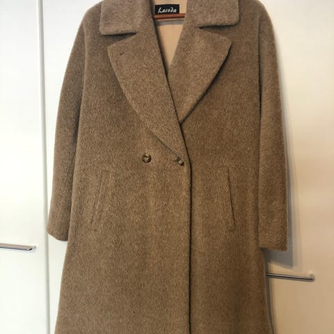 Syvän viininpunainen talvitakki, napit sivuissa ja hihojen suussa.