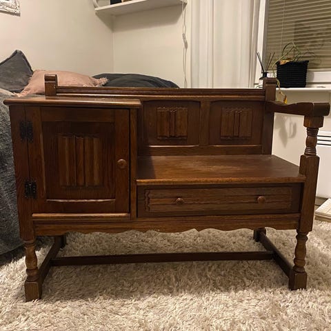 Puinen puhelinpöytä säilytyslaatikolla
