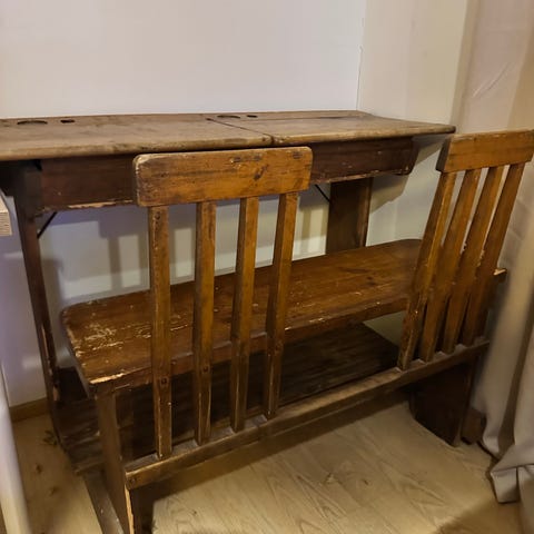 Puinen puhelinpöytä, jossa on verhoiltu istuinosa ja korkea, napitettu selkänoja koristeellisilla kaiverruksilla. Pöydässä on sivulla taso sekä vetolaatikko pientavaroiden säilytykseen. Sopii esimerkiksi eteiseen tai olohuoneeseen istuimeksi ja laskutasoksi puhelimelle tai muille tarvikkeille.