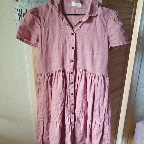 Myydään Linengirls-merkkinen beige pellavamekko, 100%:sesti pellavaa. Ostin käytettynä, mutta valitettavasti oli itselle väärän kokoinen. Myyjän mukaan sävy on Cappucino, eikä mekkoa ollut käytetty kuin kerran.
