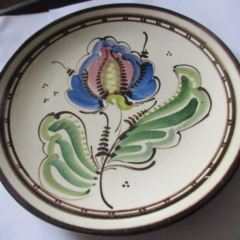 Kaunis n. 1940-luvun käsinmaalattu seinälautanen.