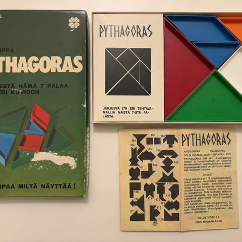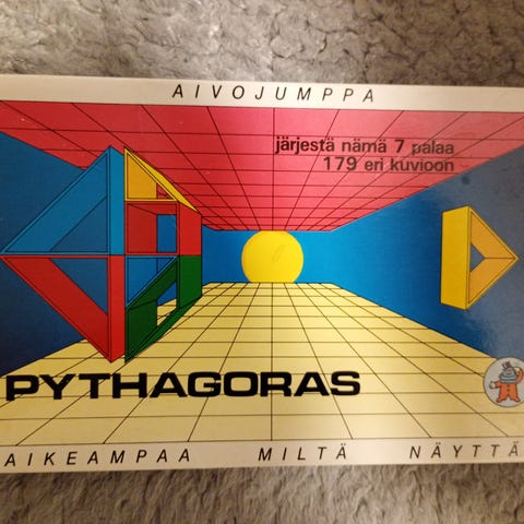 Retro Pythagoras aivojumppa peli. Osat tallella, mutta ohjelehtisestä puuttuu viimeiset kuvat. Laatikko kärsinyt. Nouto tai ostaja maksaa postikulut
