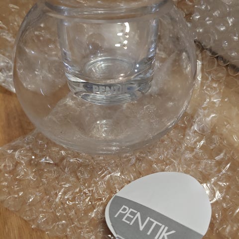 Kuvan mukainen käyttämätön ja vielä muoveissa oleva Pentik, Pallo lasimaljakko, 10x11 cm. Nouto Tampereen Annalasta tai postikulut lisätään.