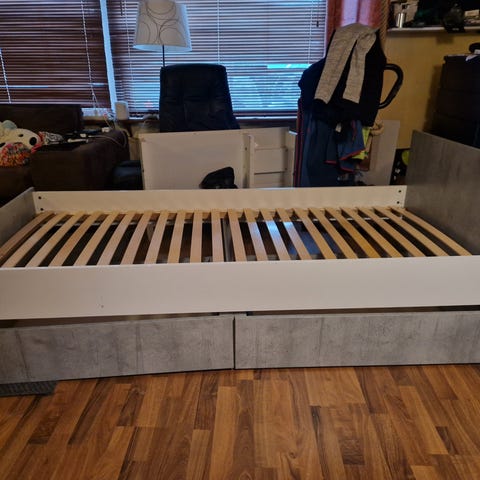 Myydään Jyskin (TANGBJERG) levitettävä sänky patjan hinnalla. Sänky ostettu käytettynä ja käytönjälkiä lähinnä fiksauksista (laatikoiden pohjassa ja sälepohjan metalliosan kiinnityksessä/ei näy käytössä).