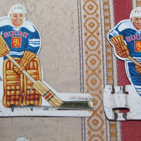 Suomi Neuvostoliitto jääkiekkopeli CCCP pelaajat vintage GWS 60-luku peltinen