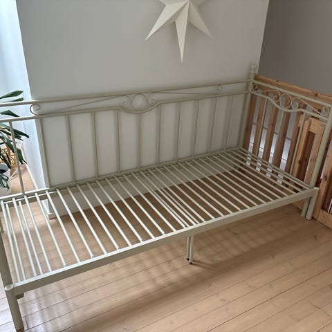 Kuvanmukainen Askon metallinen sohvasängyn runko ilman patjoja. Sohva on purettuna osiin.