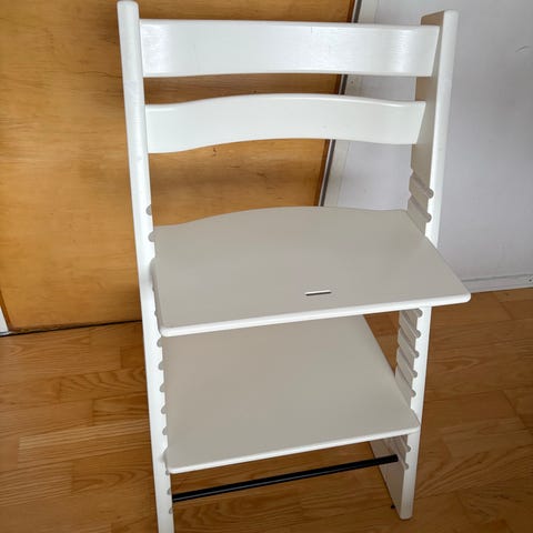 Myydään siistikuntoinen klassikkotuoli, joka kasvaa lapsen mukana. Väri valkoinen. Muutama jälki levyissä sekä rungossa (ks. kuvat), yleisilmeeltään kuitenkin oikein siisti.